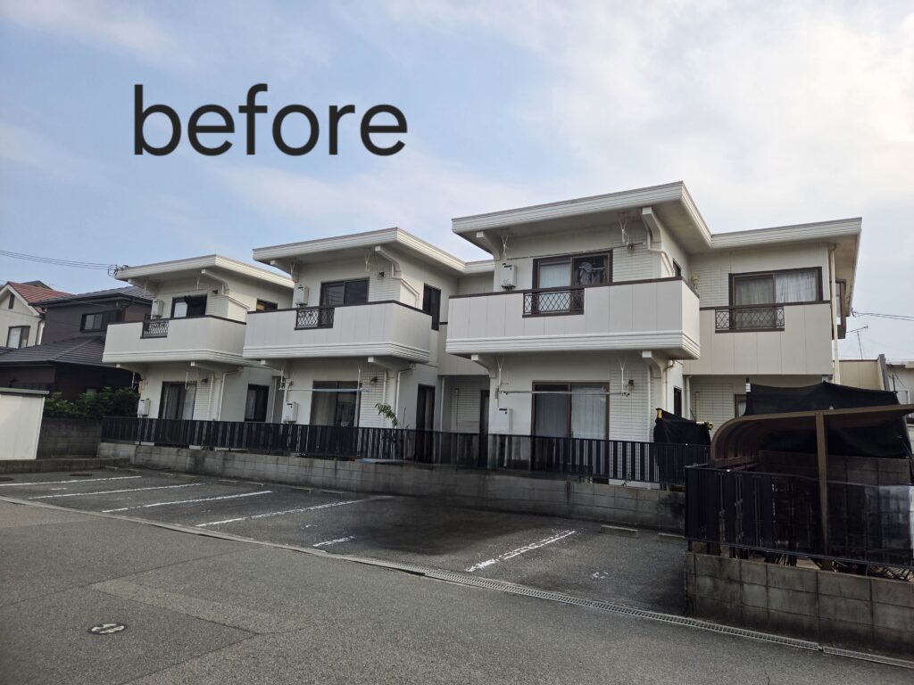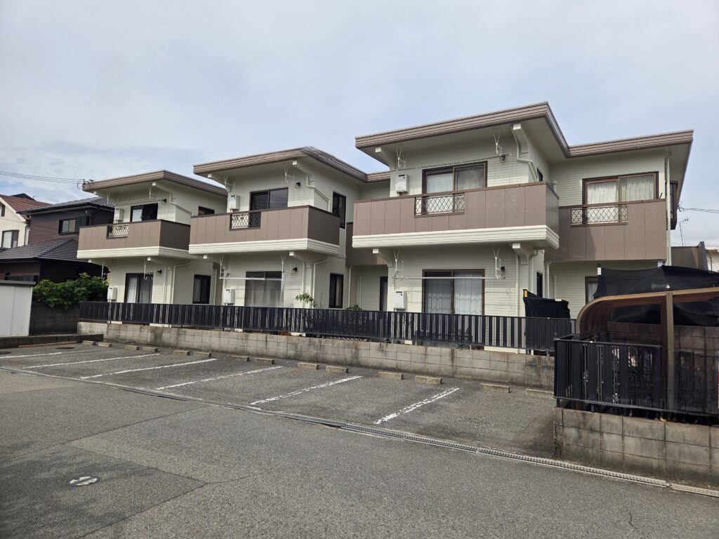 ご依頼内容 老朽化した外壁をリフレッシュするため、色分けした外壁塗装と鉄骨階段部分の塗装を考えているとご依頼がありました。